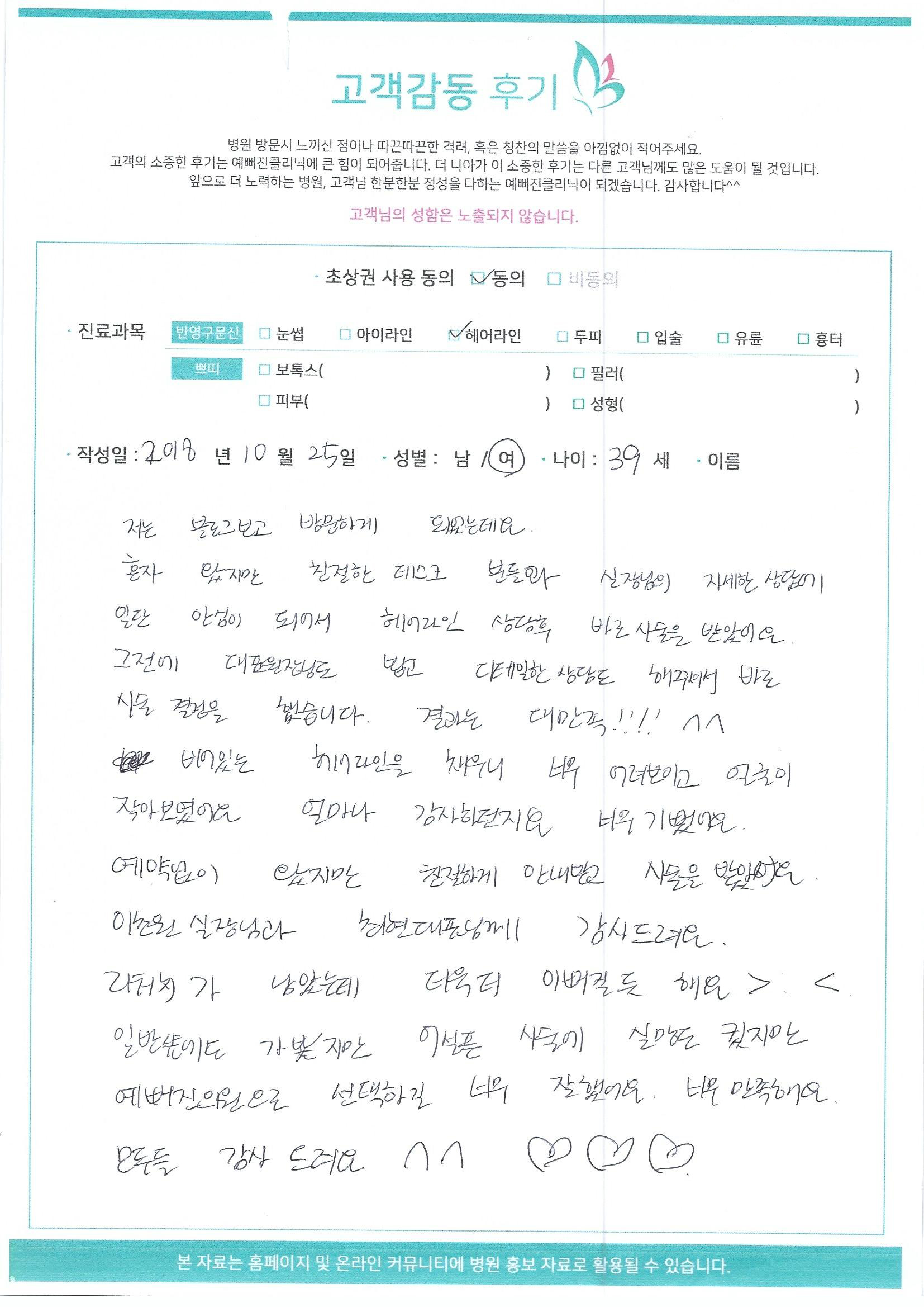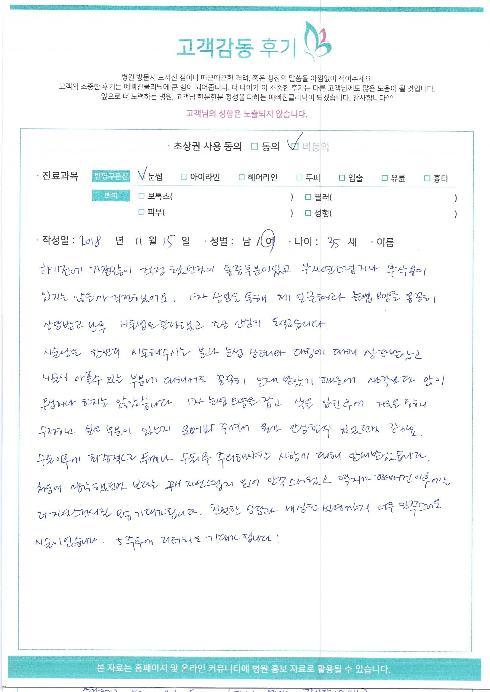 시술후기 어제보다 오늘 더 예뻐진 고객님들의 리얼 후기 전체보기 피부&성형센터 반영구 센터 검색 제목+내용 제목 내용 검색어 필수 검색검색 NO 제목 작성자 날짜 126 [고객의소리] 반영구 후기입니다 자연눈썹 김* 2018.11.16 10:40 125 [고객의소리] 반영구 후기입니다 자연눈썹 윤** 2018.11.16 10:39 124 [고객의소리] 반영구 후기입니다 헤어라인 정** 2018.11.16 10:39 123 [고객의소리] 반영구 후기입니다 자연눈썹 이** 2018.11.16 10:38 122 [고객의소리] 반영구&쁘띠 후기입니다 보톡스 김** 2018.11.16 10:36 121 [고객의소리] 반영구 후기입니다 자연눈썹 신** 2018.11.07 11:24 120 [고객의소리] 반영구 후기입니다 자연눈썹 풍** 2018.11.07 11:23 119 [고객의소리] 반영구 후기입니다 자연눈썹 김** 2018.11.07 11:23 118 [고객의소리] 반영구 후기입니다 자연눈썹 전** 2018.11.07 11:23 117 [고객의소리] 반영구 후기입니다 자연눈썹 최** 2018.11.07 11:22 116 [고객의소리] 반영구 후기입니다 자연눈썹 김** 2018.11.07 11:21 115 [고객의소리] 반영구 후기입니다 자연눈썹 정** 2018.11.07 11:21 114 [고객의소리] 반영구 후기입니다 자연눈썹 김** 2018.11.07 11:20 113 [고객의소리] 반영구 후기입니다 자연눈썹 이** 2018.11.07 11:20 112 [고객의소리] 반영구 후기입니다 자연눈썹 엄** 2018.11.07 11:19 글쓰기
